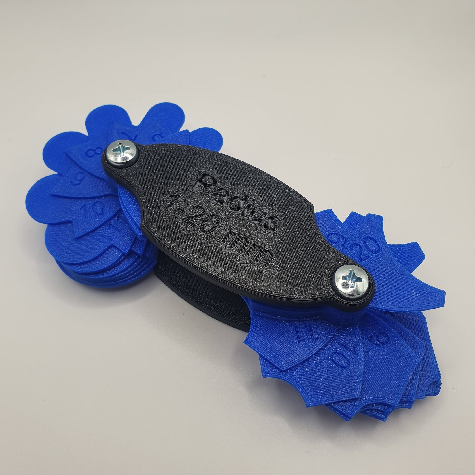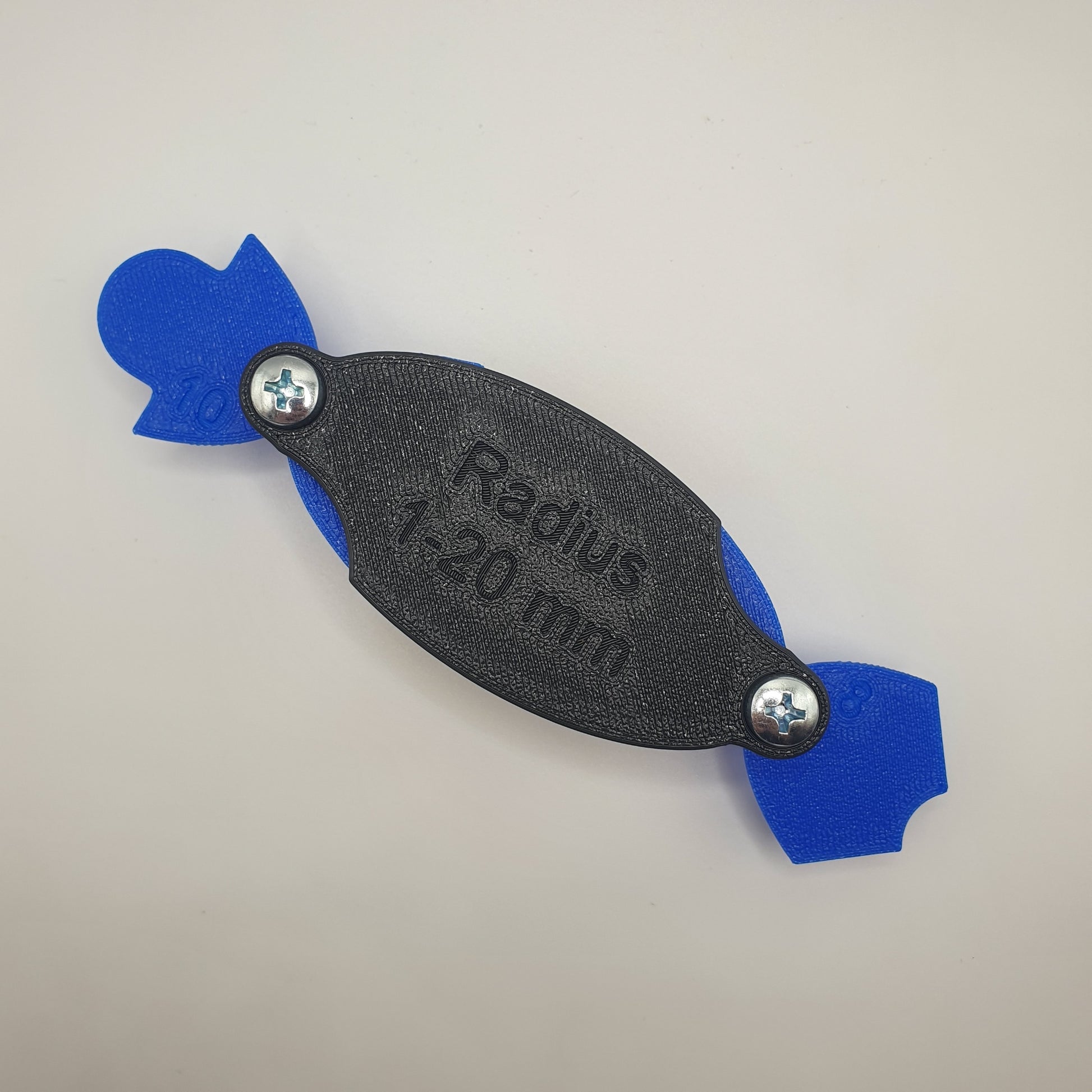 Used to measure inner and outer radii ranging from 1 mm to 20 mm. An M5 screw holds the gauges together and can be tightened or loosened in seconds to the desired tension.